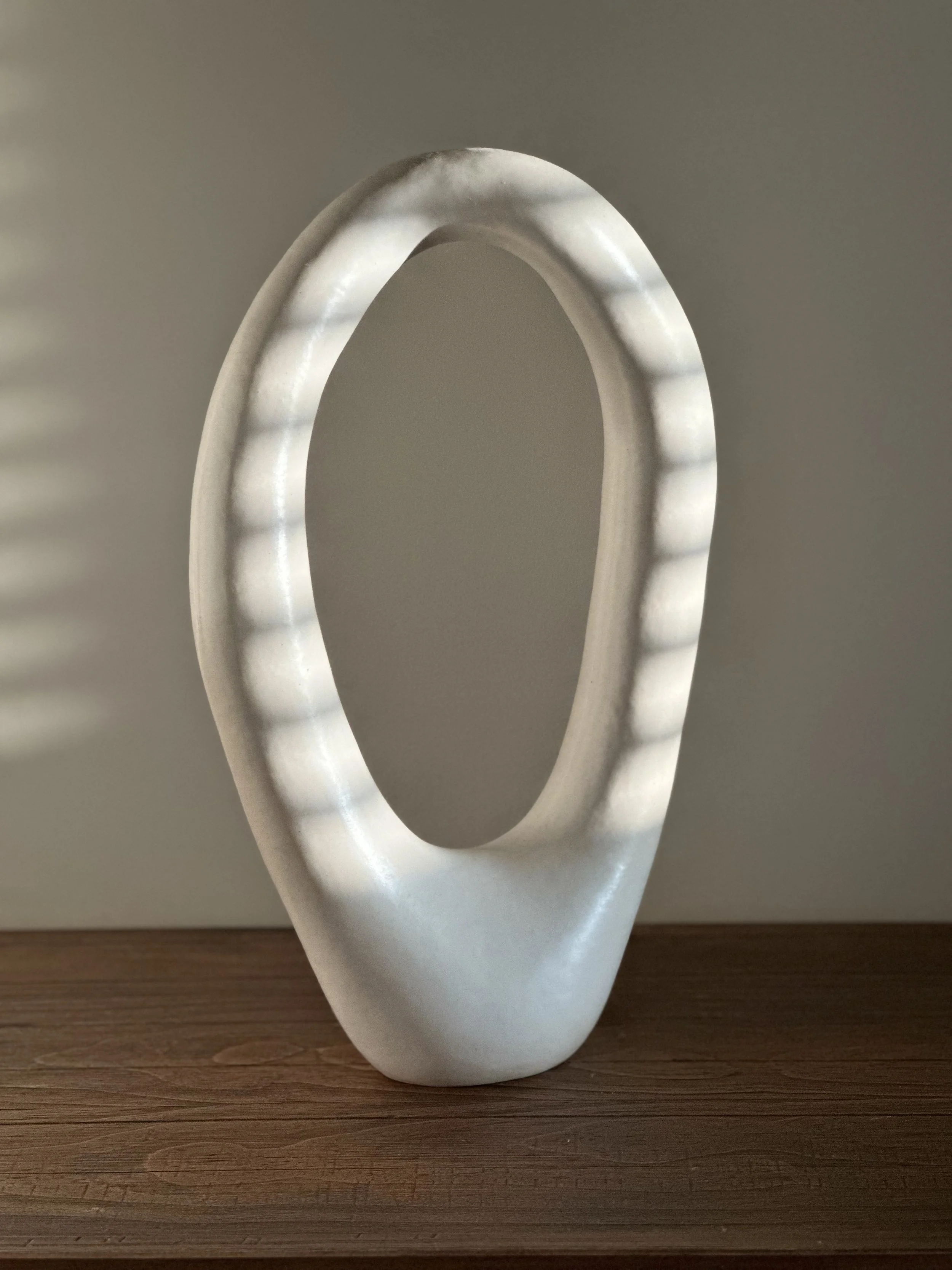 このシリーズは、中央に空洞を持ち、どこか不完全な形をした彫刻作品を通して、こう語りかけます。