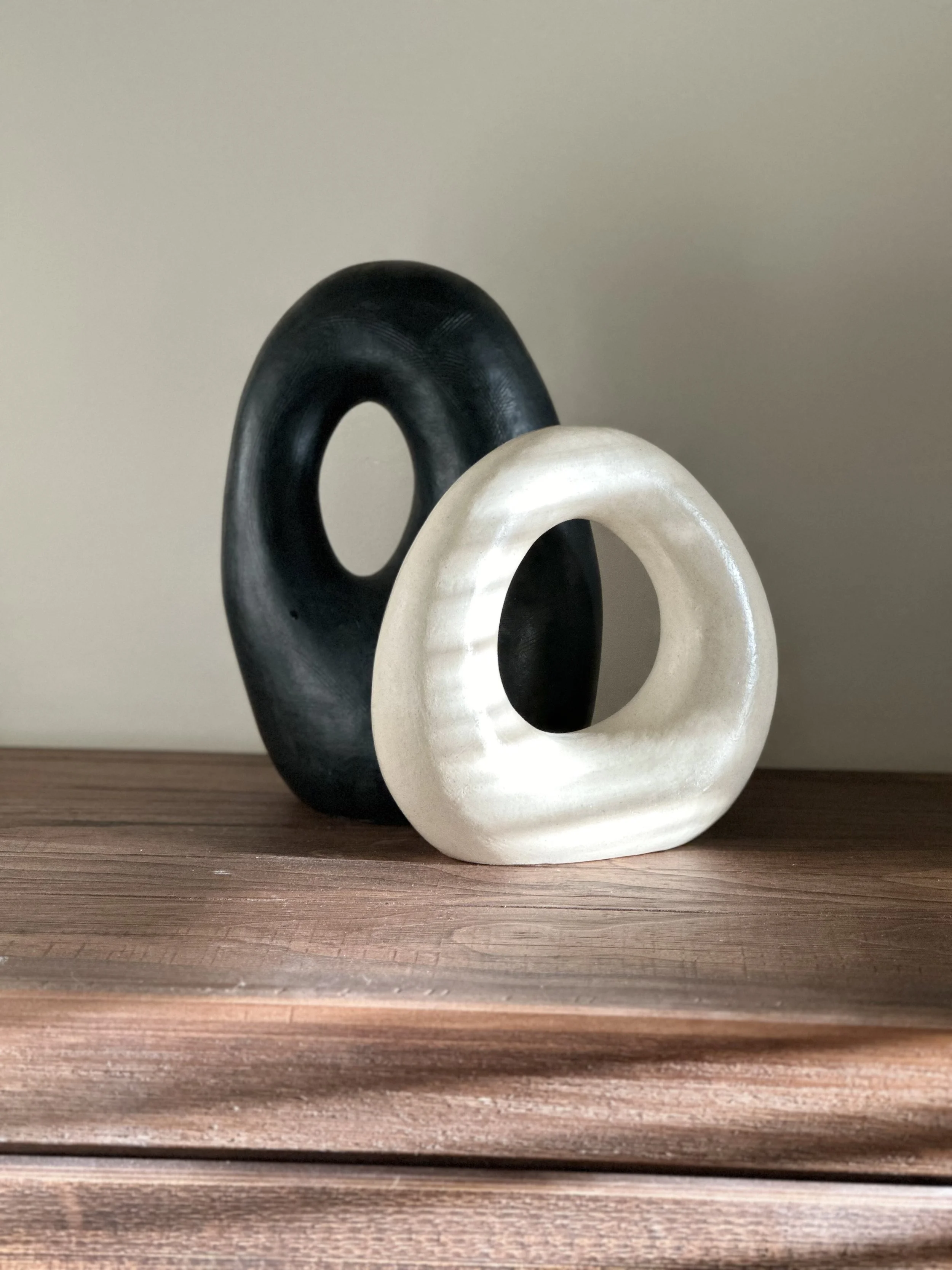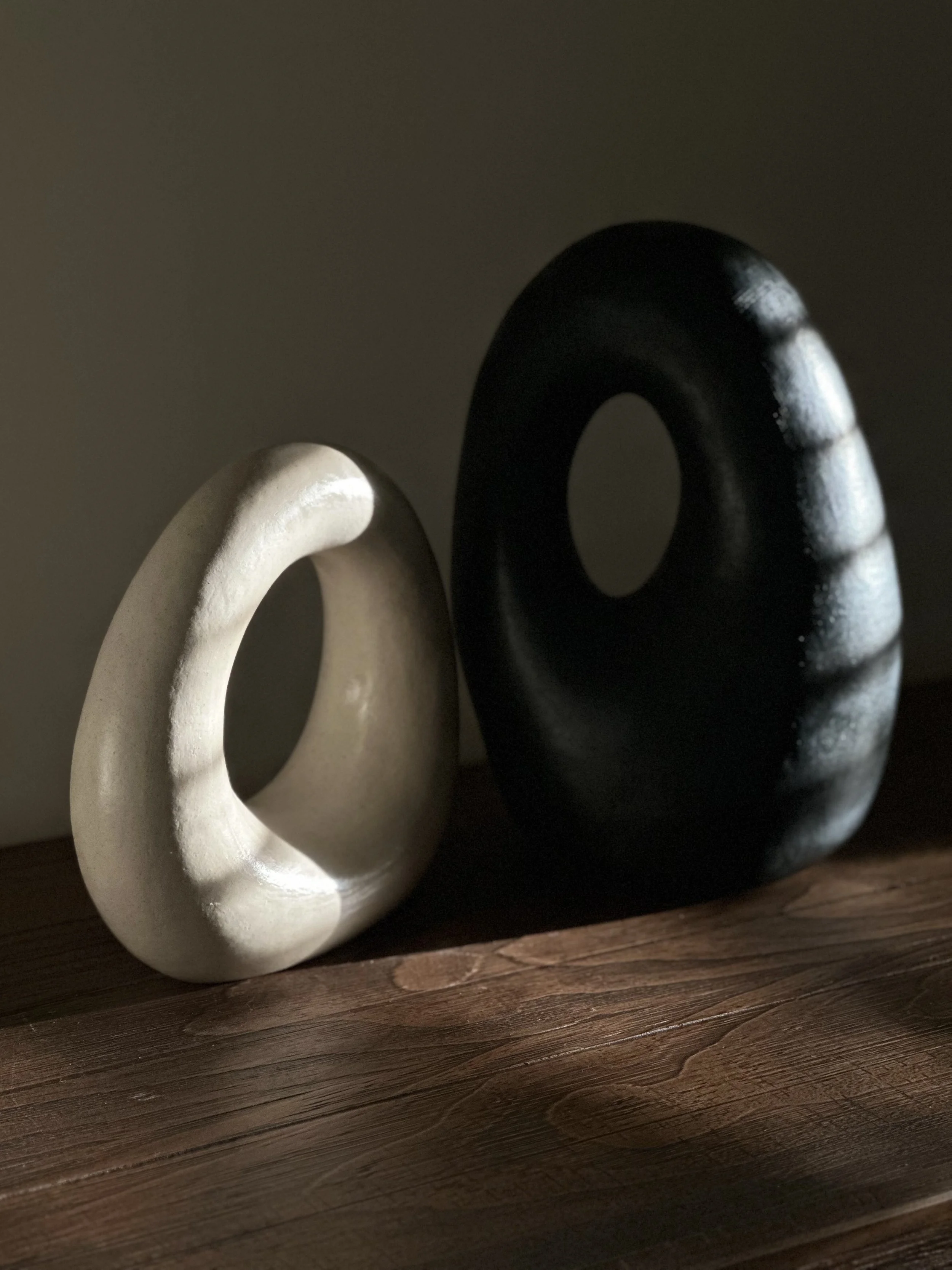 In a world flooded with media, opinions, and hearsay, can we truly say what we believe is real? Through hollow-centered, imperfect sculptural forms, these works gently whisper: